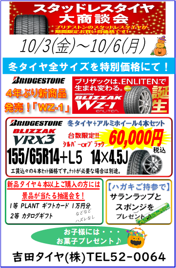 10月3日(金)~6日(月)まで、スタッドレスタイヤ大商談会を